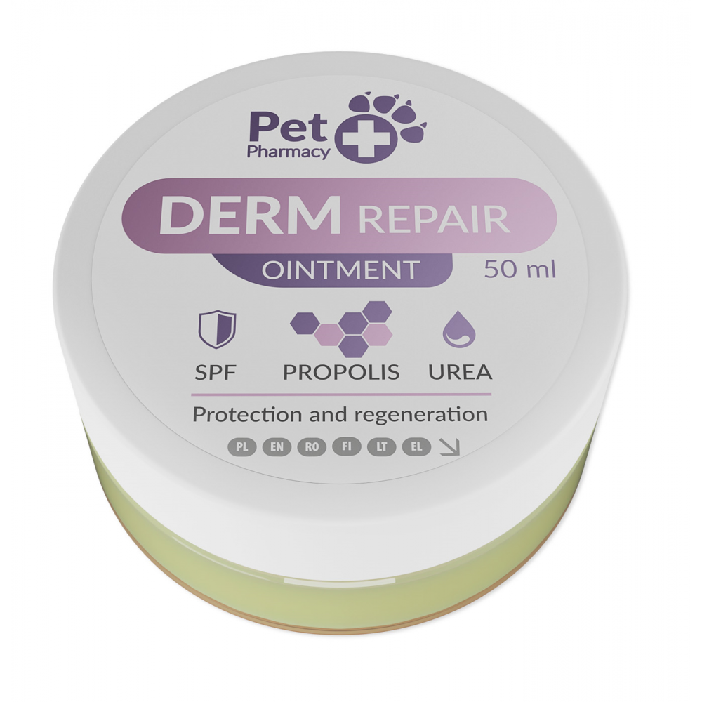 DermRepair é uma pomada protetora e regeneradora da pele, com proteção contra os raios UV, desenvolvida para animais de estimação. Cria uma barreira protetora na pele que a protege contra os efeitos prejudiciais provenientes de fatores externos.