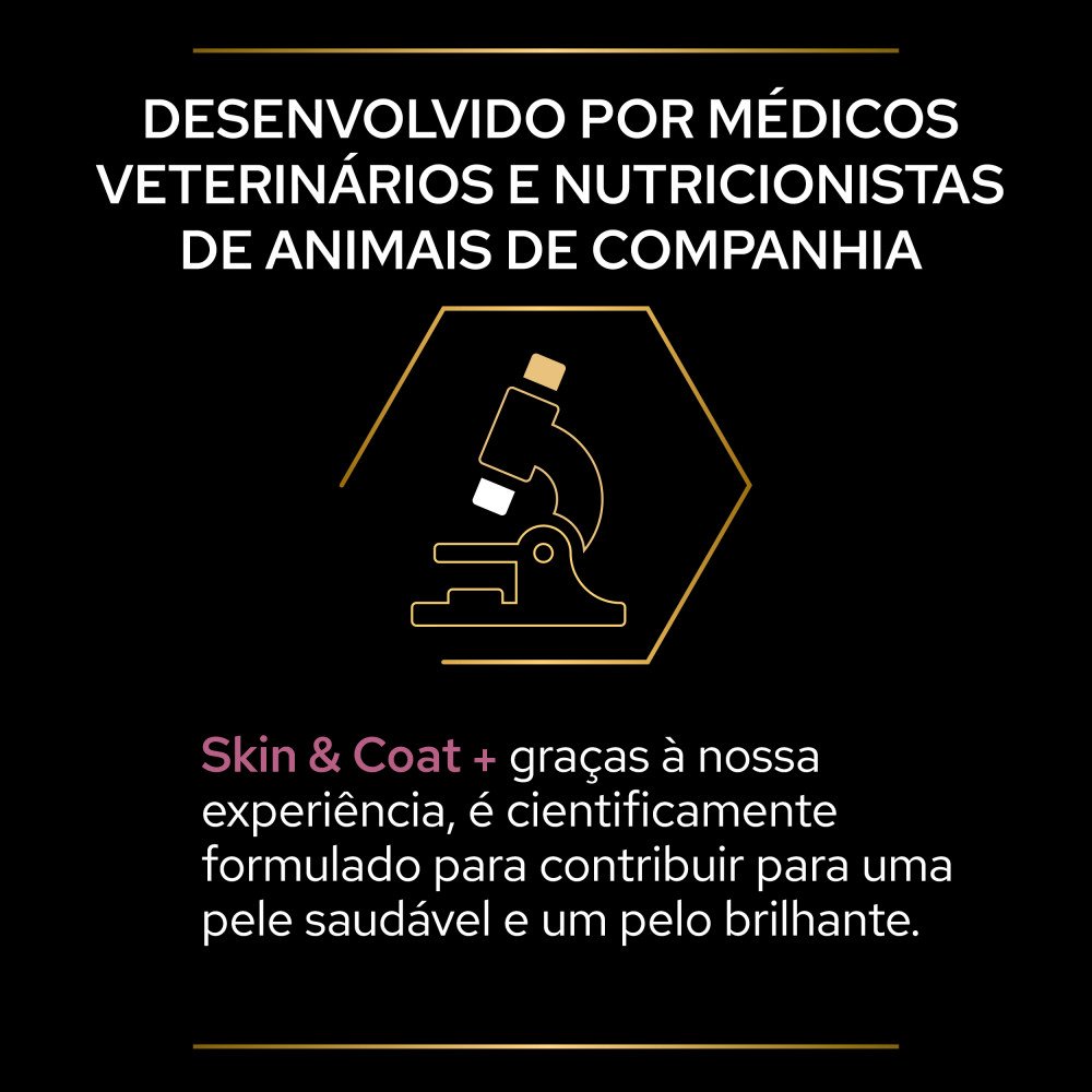 PRO PLAN Skin & Coat+ é um suplemento que ajuda a nutrir a pele e o pelo do seu cão de dentro para fora, graças a ingredientes essenciais (tais como ácidos gordos ómegas 3 e 6, provenientes do óleo de salmão da Noruega, óleo de linhaça e vitamina E). Cientificamente formulado para suportar uma pele saudável (hidratação e firmeza) e um pelo brilhante.